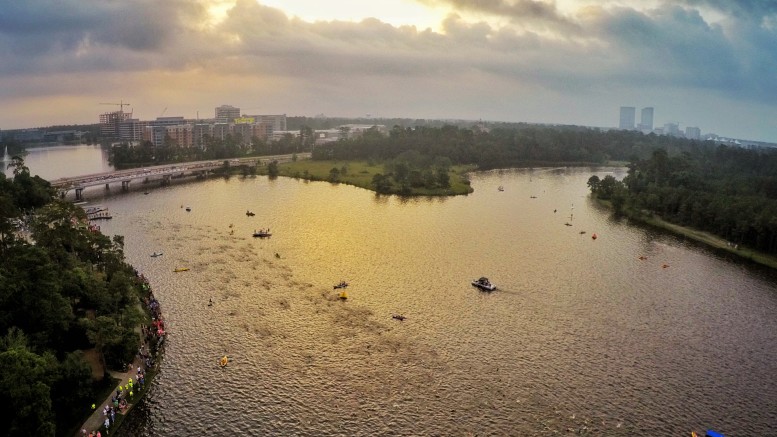 Temperatures at the event are almost always Kona-like and the non-wetsuit swim is almost always a given. The warm, fresh water swim takes place in a fairly constricted body of water. The swim is an out and back, followed by a right hand turn into a fairly narrow canal.