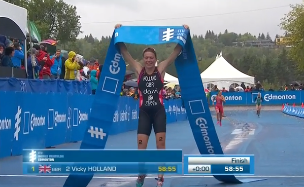 The top three Americans, who also happen to be the top three in the world right now, sat out the Edmonton event — presumably because they don’t need the points and because at least two of them already have their Rio Olympics spots secured, so there’s not much point in heading to Canada. (Not that it isn’t lovely.) Without Gwen Jorgensen, Sarah True (Groff), or Katie Zaferes racing, or Andrew Hewitt, who is 4th in the world rankings, the race was a bit wide open. But not that wide open. Basically, it was just enough open that people like Flora Duffy and Vicky Holland could have their turn to shine.